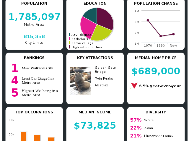 Puisque nous sommes aux USA et dans la data restons-y avec une petite app du site The Atlantic Cities. Réalisée à partir des données du Département du Travail et d’une enquête de consommation du site immobilier Zillow.com, cette application légère offre un cliché data instantané des principales villes américaines grâce à neuf indicateurs basiques autour de la population, du logement, de l’éducation ou du tourisme. A défaut de remporter un grand prix de webdesign ou de casser trois pattes à un canard, ce petit module utile pourrait, qui sait, gagner votre généreuse approbation.